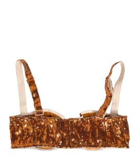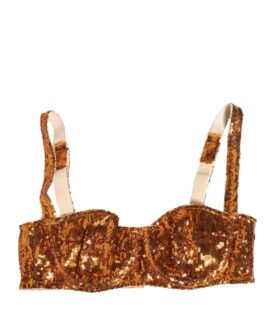 Dolce & Gabbana Gold Sequined Nyon Balconnet Bra Underwear