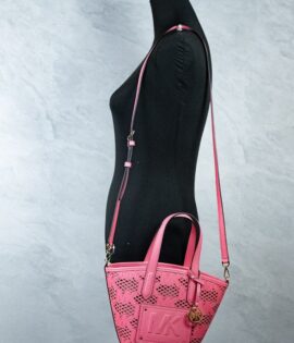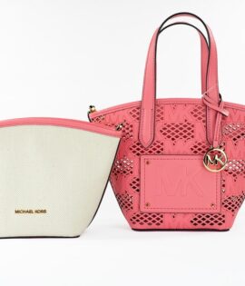 Michael Kors Kimber Small Tea Rose Leather 2-In-1 Zip Tote Messenger Bag Purse