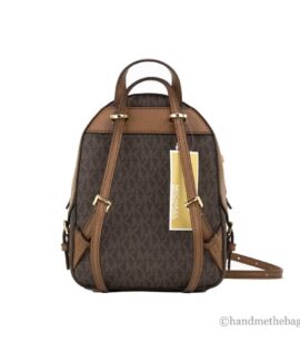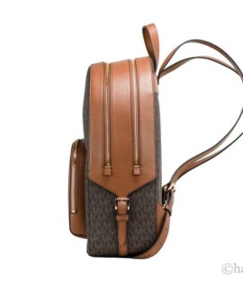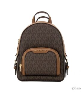 Michael Kors Jaycee Mini XS Brown Signature PVC Zip Pocket Shoulder Backpack Bag