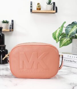 Michael Kors Jet Set Travel Medium Sherbert Leather Oval Camera Crossbody Bag
