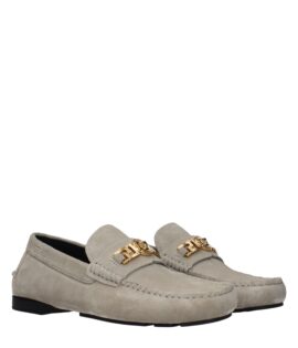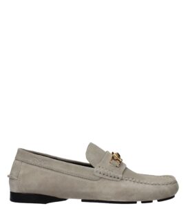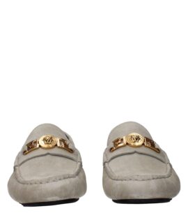 Versace Gray Leather Slip-On Loafers