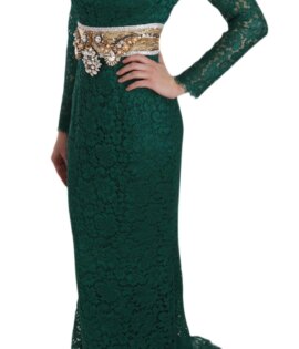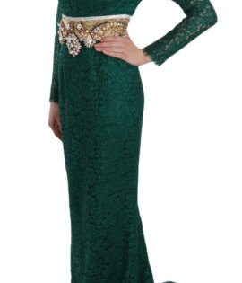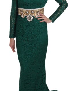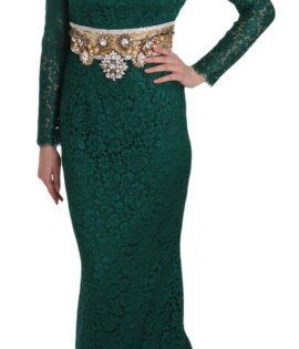 Dolce & Gabbana Crystal Gold Belt Lace Sheath Gown Dress