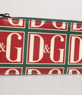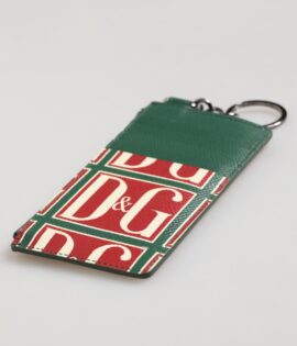 Dolce & Gabbana Green Calf Leather Logo Print Monogram Card Holder Wallet