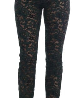 Dolce & Gabbana Green Floral Lace Leggings Pants