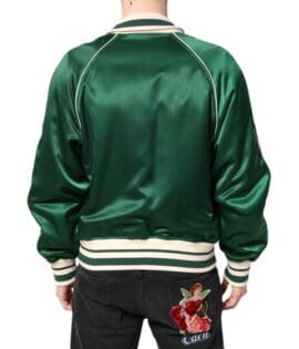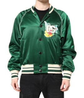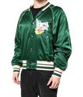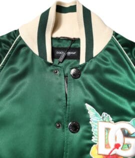 Dolce & Gabbana Green Floral DG Logo Full Zip Bomber Jacket