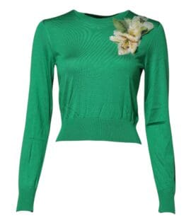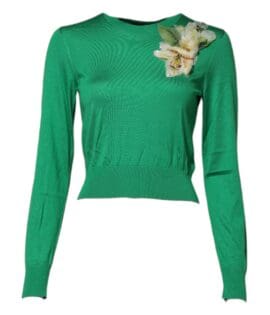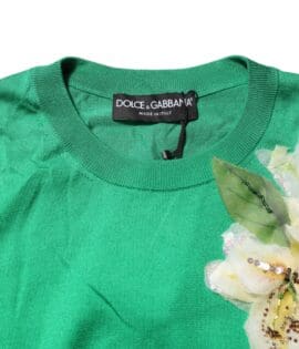 Dolce & Gabbana Green Floral Detailing Silk Pullover Sweater