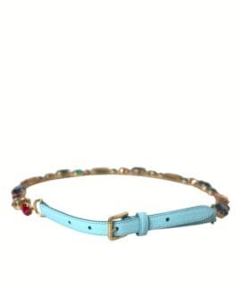 Dolce & Gabbana Light Blue Leather Crystal Chain Waist Belt