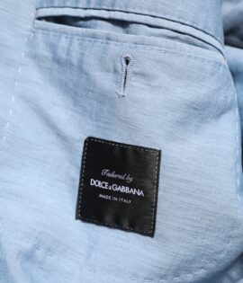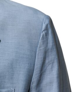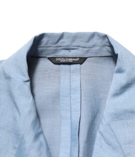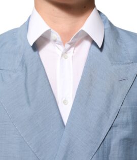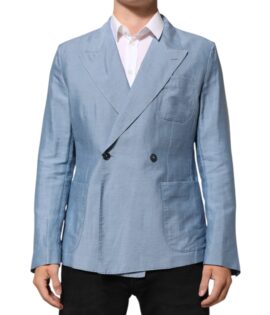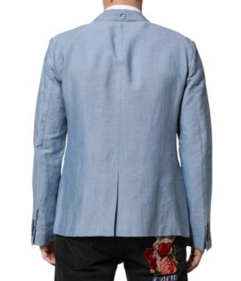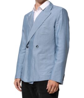 Dolce & Gabbana Light Blue Linen Double Breasted Men Jacket Blazer