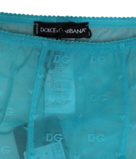 Dolce & Gabbana Light Blue Nylon Logo Lace Leggings Pants Underwear