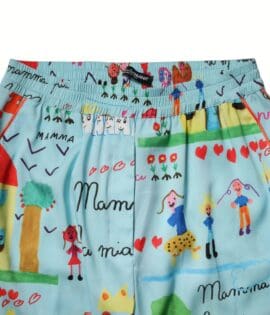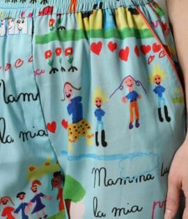 Dolce & Gabbana Light Blue Drawing Mid Waist Wide Leg Pants