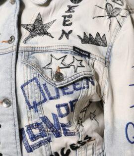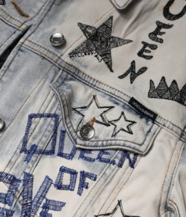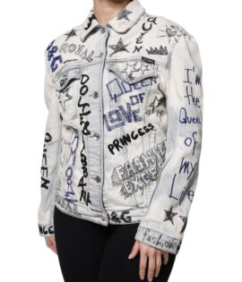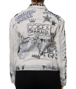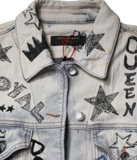 Dolce & Gabbana Light Blue Graffiti Button Down Denim Jacket