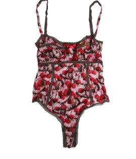 Roberto Cavalli Multicolor CherryPrint Lace Bodysuit Underwear