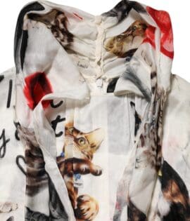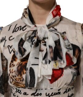 Dolce & Gabbana Multicolor Floral Patchwork Design Ascot Collar Top Blouse