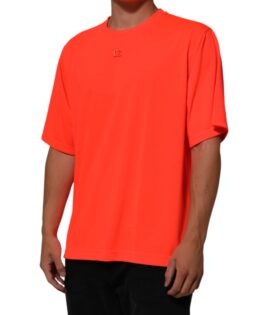 Dolce & Gabbana Neon Orange Polyester Men Crew Neck T-shirt