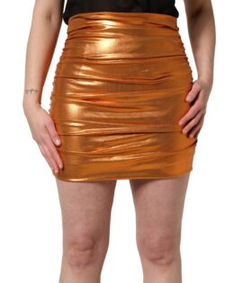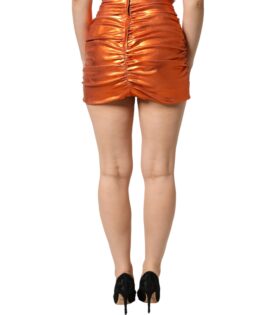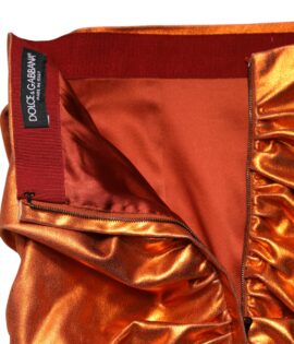 Dolce & Gabbana Metallic Orange Ruched Lame Bodycon Mini Skirt