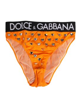 Dolce & Gabbana Orange Crystal High Waist Brief Panty Underwear