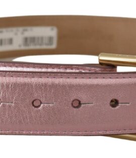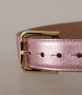 Dolce & Gabbana Metallic Pink Polished Leather Logo Metal Buckle Belt