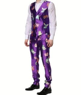 Dolce & Gabbana Purple Silk Animal Print 3 Piece Suit