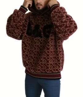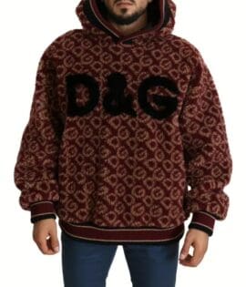 Dolce & Gabbana Red Beige Wool Oversize Hooded Pullover Sweater