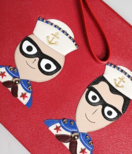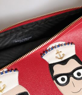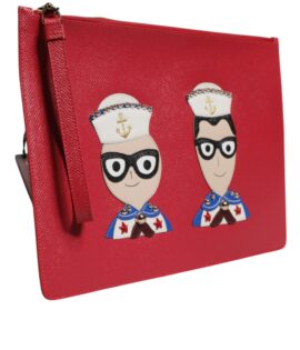 Dolce & Gabbana Red #DGFamily Embellished Leather Clutch Bag