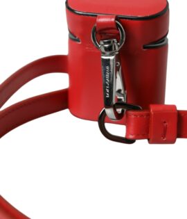 Dolce & Gabbana Red Calfskin Leather Logo Print Strap Men Airpods Case