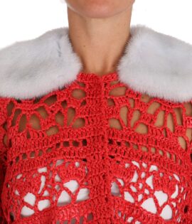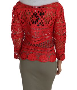 Dolce & Gabbana Red Cardigan Crochet Knit Raffia Sweater