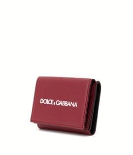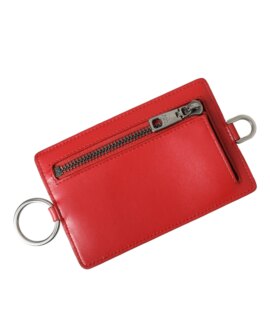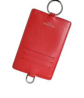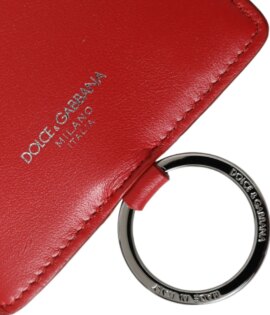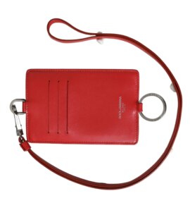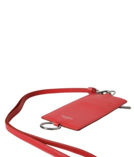 Dolce & Gabbana Red Calfskin Leather Lanyard Logo Card Holder Wallet