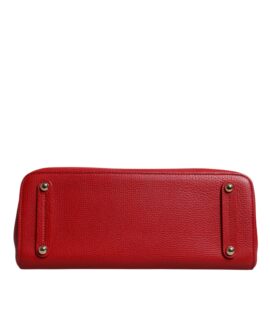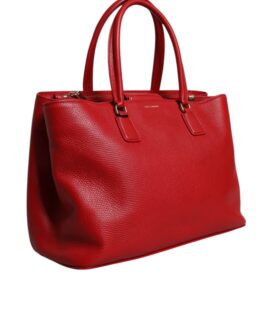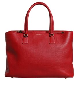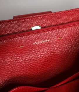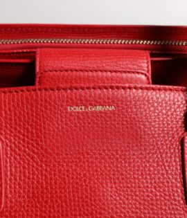 Dolce & Gabbana Red Calfskin Leather Logo Plaque Top Handle Bag