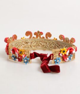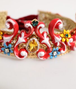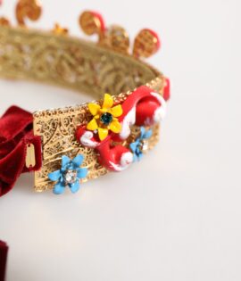 Dolce & Gabbana Red Carretto Multicolor Crystal Gold Tiara Crow Headband