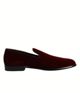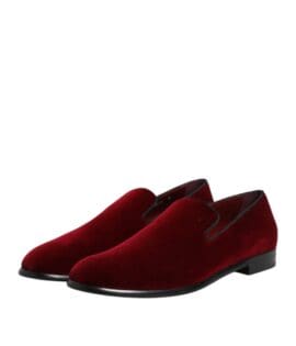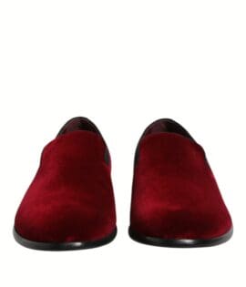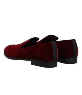 Dolce & Gabbana Red Cotton Velvet Slip On Loafers Formal Shoes