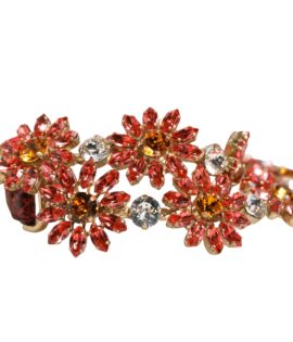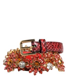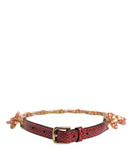 Dolce & Gabbana Red Leather Daisy Crystal Embellished Waist Belt