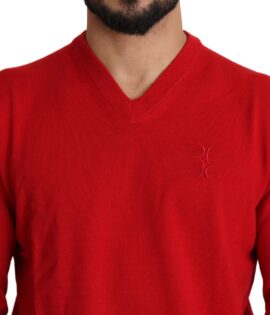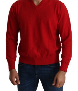 Billionaire Italian Couture Red V-neck Wool Sweatshirt Pullover Sweater