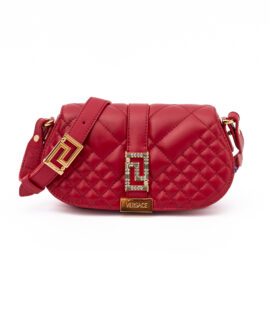 Versace Red Leather Quilted Shoulder Strap Bag