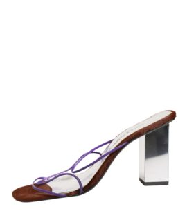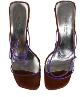 Dolce & Gabbana Silver Block Heels Slip On Sandals Shoes