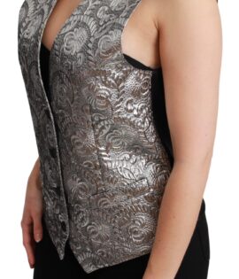 Dolce & Gabbana Silver Brocade Sleeveless Metallic Top
