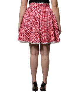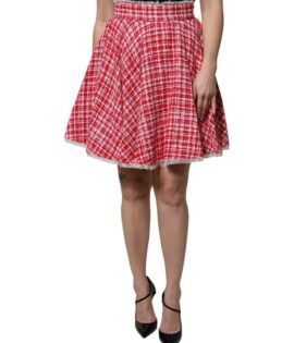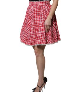 Dolce & Gabbana Red White High Waist A-line Above Knee Skirt