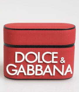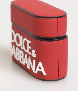 Dolce & Gabbana Red White Silicone Embossed Logo Accessory Airpods Case