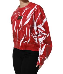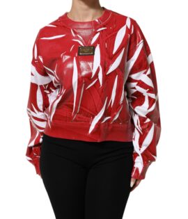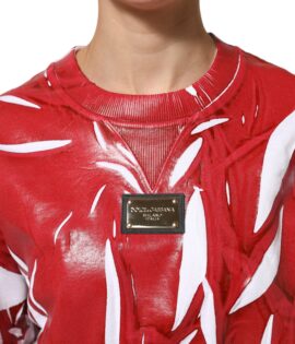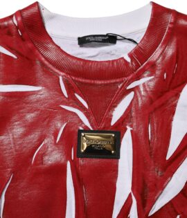 Dolce & Gabbana Red White Cotton Printed Pullover Sweater