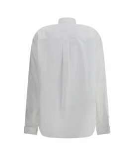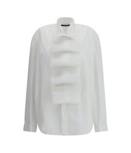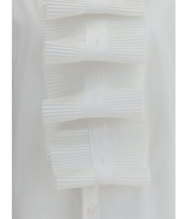 AGLINI White Cotton Collared Long Sleeves Ruffle Top Shirt