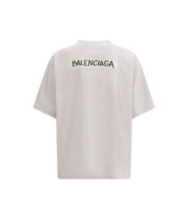 Balenciaga White Logo Cotton Crew Neck Short Sleeves T-shirt