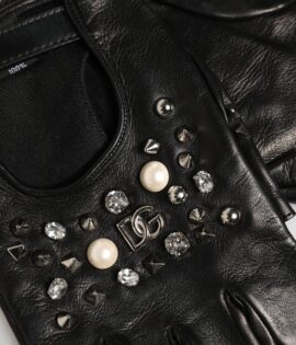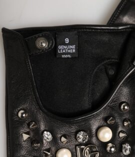 Dolce & Gabbana Black Embellished Wrist Length Mitten Women Gloves
