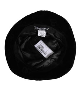 Dolce & Gabbana Black Cotton Suede Bucket Logo Capello Hat