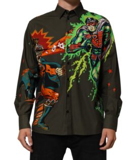 Dolce & Gabbana Green Superhero Print Button Down Shirt