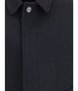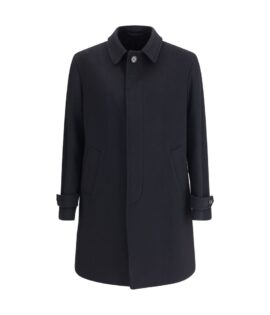 Lardini Black Fleece Wool Trench Coat