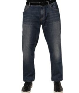 Dolce & Gabbana Blue Cotton Logo Plaque Slim Denim Jeans