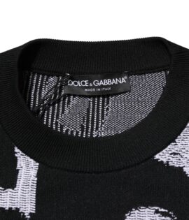 Dolce & Gabbana Black Nylon Wool Heart Print Pullover Sweater