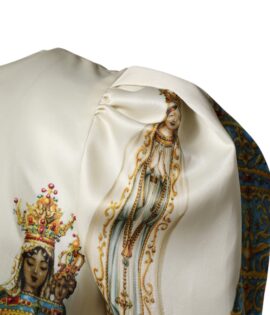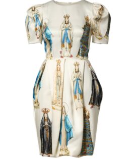 Dolce & Gabbana Beige Madonne Print Silk Short Sleeve Dress