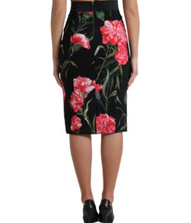 Dolce & Gabbana Black Carnation Pencil Cut Knee Length Skirt