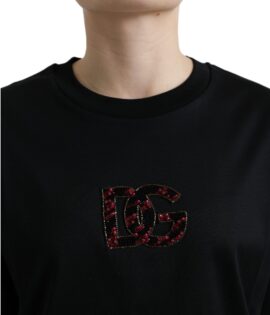 Dolce & Gabbana Black Cotton DG Crystal Crewneck Tee T-shirt