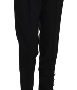 Dolce & Gabbana Black Button Pleated Tapered Trouser Pants
